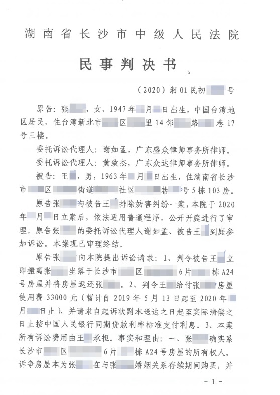 #黄致杰律师 再起诉讼为张小姐讨回房子