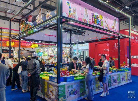 4月14日在第五届消博会上拍摄的一家销售儿童玩具的台湾企业展位。新华社记者 严钰景 摄