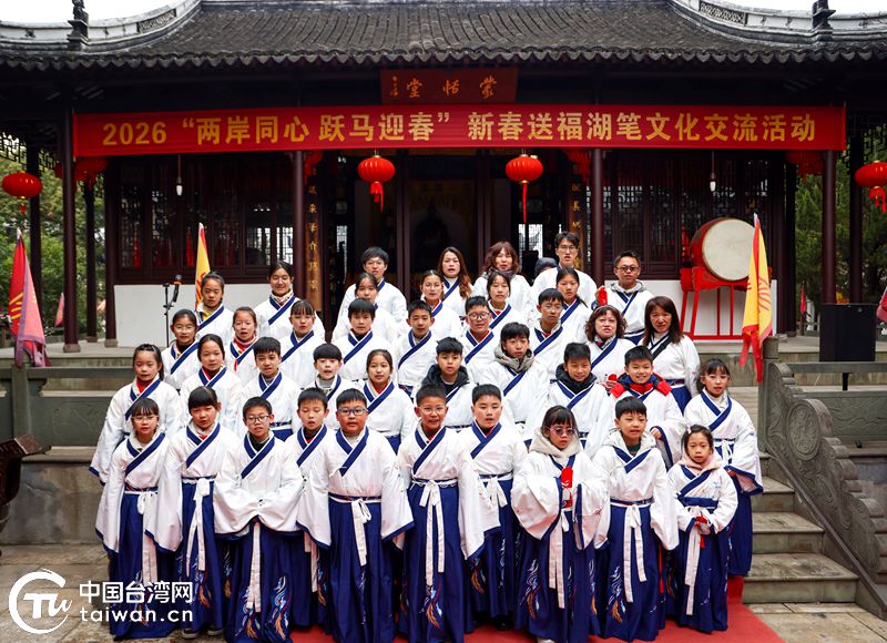 中国台湾网1月28日讯 共织文化纽带,深植一家亲情。1月27日,2026“两岸同心 跃马迎春”新春送福湖笔文化交流活动在湖州市南浔区善琏镇开幕。活动邀请了台湾青少年学生、南浔善琏学校学生及传统技艺传承人等近百名两岸嘉宾共聚一堂、共享盛宴。