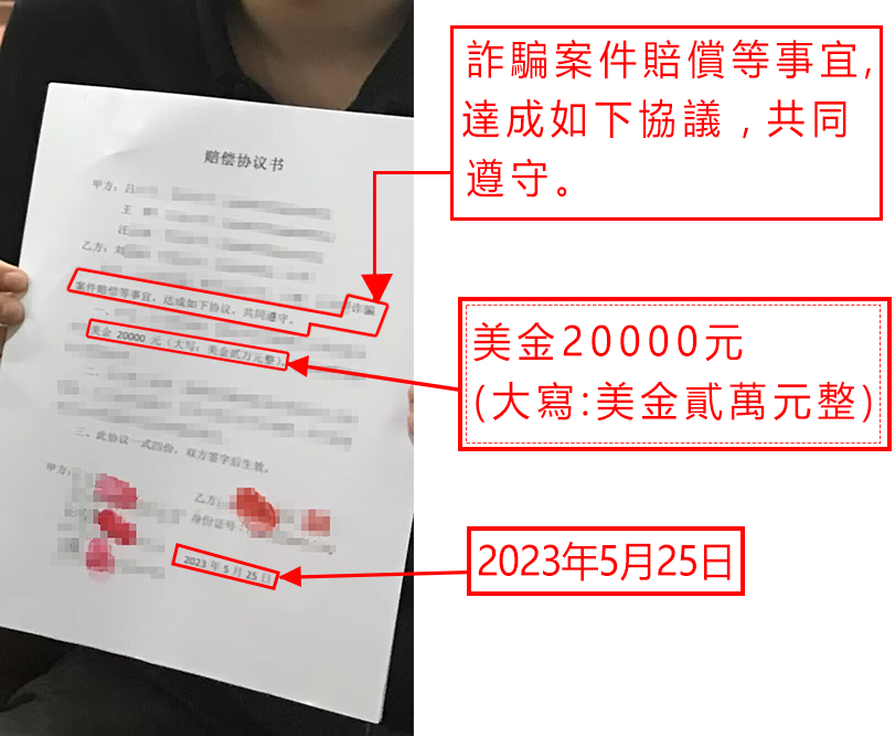 双方沟通协商后,嫌犯将诈骗金额美金两万元返还,