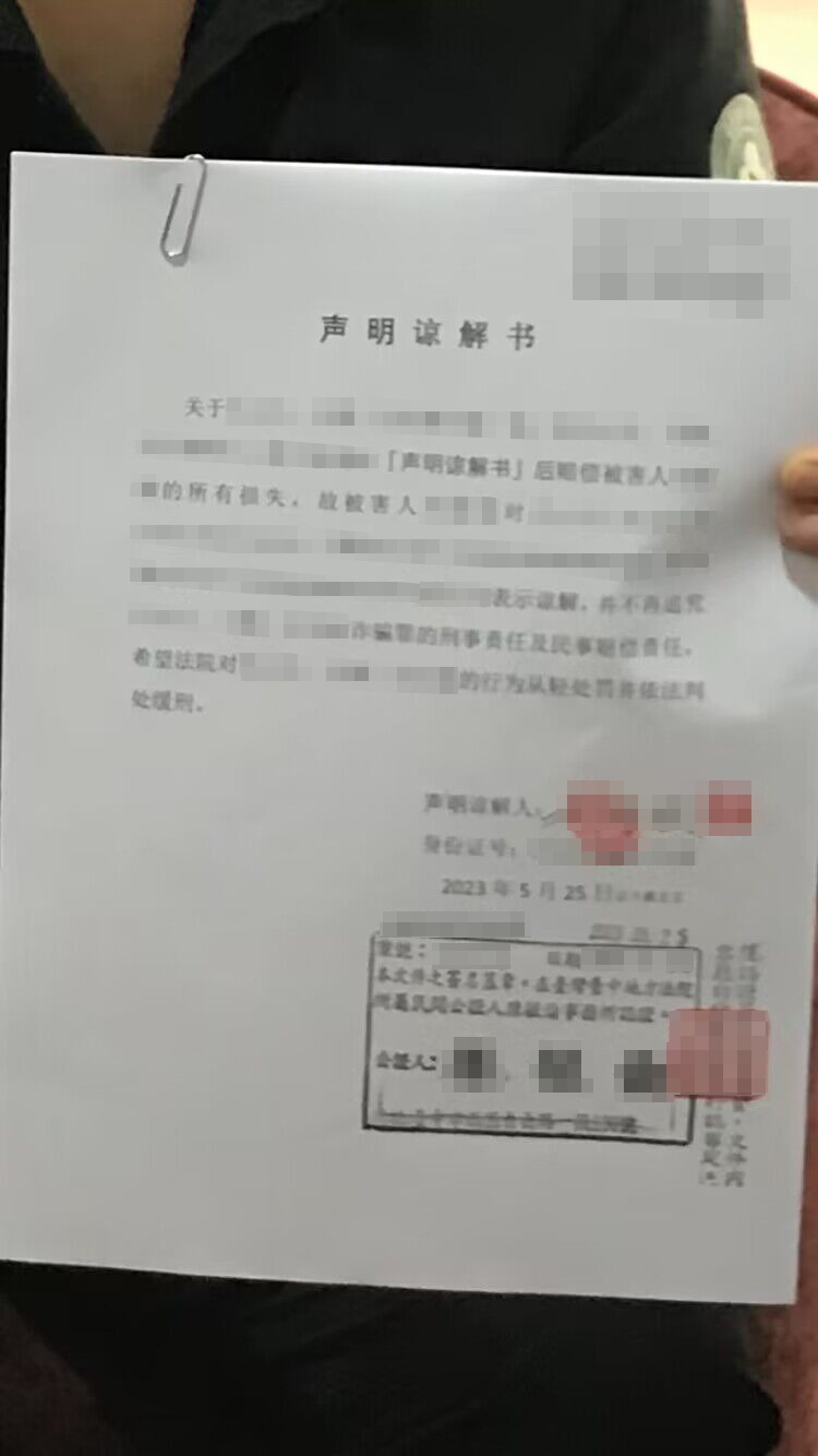 并将委托人的声明谅解书转交给嫌犯三人,