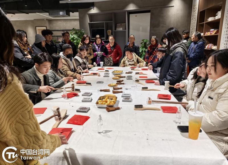 两岸青年体验拓印。(中国台湾网发)